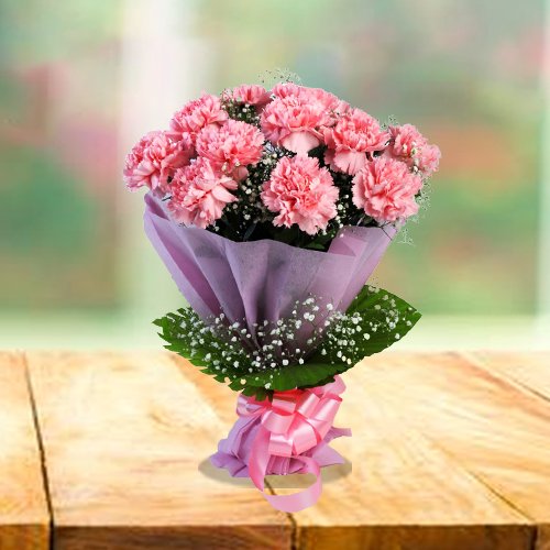 The Pink Carnation Love bouquet features soft pink carnations, representing admiration, gratitude, and gentle emotions.